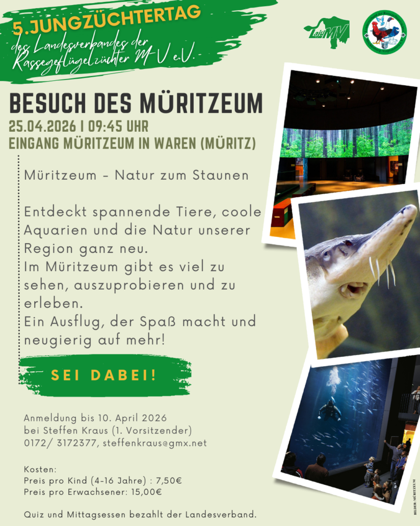 wir laden Euch herzlich ein, den 5. Jungzüchtertag der Landesjugendgruppe der Rassegeflügelzüchter M-V e.V. mit uns im Müritzeum Waren zu verbringen.